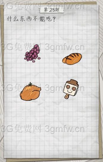 什么东西不能吃是《最囧游戏4》第25关的问题,很多网友不知道怎么过,下面小编给大家带来最囧游戏4第25关攻略答案。 问题:什么东西不能吃? 答案:点雪糕棍(熟悉的套路)。 老友网www.andlaou.com免费为你分享