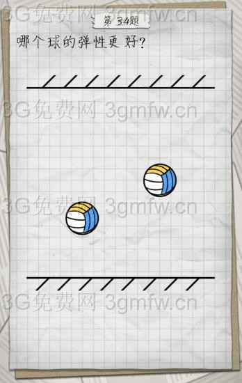 哪个球的弹性更好是《最囧游戏4》第34关的问题,很多网友不知道怎么过,下面小编给大家带来最囧游戏4第34关攻略答案。 问题:哪个球的弹性更好? 答案:倒过来,选弹得高的那个。 老友网www.andlaou.com免费为你分享