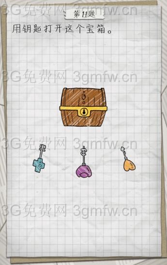 用钥匙打开这个宝箱是《最囧游戏4》第11关的问题,很多网友不知道怎么过,下面小编给大家带来最囧游戏4第11关攻略答案。 问题:用钥匙打开这个宝箱? 答案:常见的套路,拖上面白色的钥匙。 老友网www.andlaou.com免费为你分享