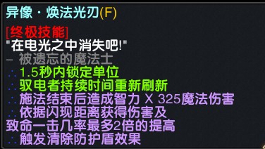 紫字:根据位移距离最多提升俩倍的伤害和暴击几率。所以电法F必定暴击需要装备提供(50-30)/1.5=13.33的概率。暴击伤害为:(325+(325X50%))X4 = 1950*智力。