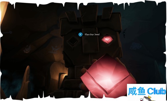 一旦进入山洞,您将看到一个大雕像。将星星珠宝放置在古代雕像中。