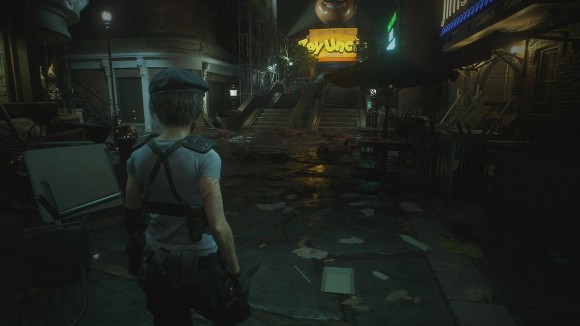 下楼梯后先去药店收集,小心这个趴着阴你的,可以用后方的油桶炸死。