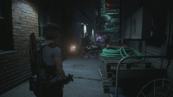 沿着左边迅速前进,大概走到瓦砾的旁边,追踪者会在远处出现