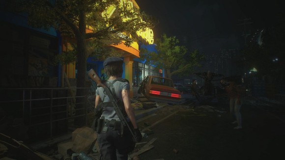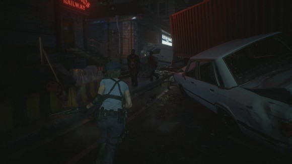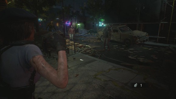 击倒最近的女丧尸,右拐进入修车屋