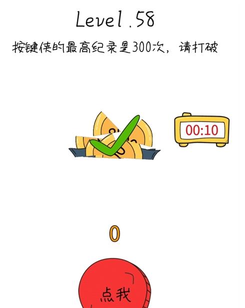 按键侠的最高纪录是300次请打破是抖音《脑洞无限开》第58关的问题,很多玩家还不知道怎么过答案是什么,为了让大家快速通关,小编带来了抖音脑洞无限开第58关攻略。