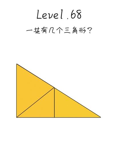 一共有几个三角形是抖音《脑洞无限开》第68关的问题,很多玩家还不知道怎么过答案是什么,为了让大家快速通关,小编带来了抖音脑洞无限开第68关攻略。