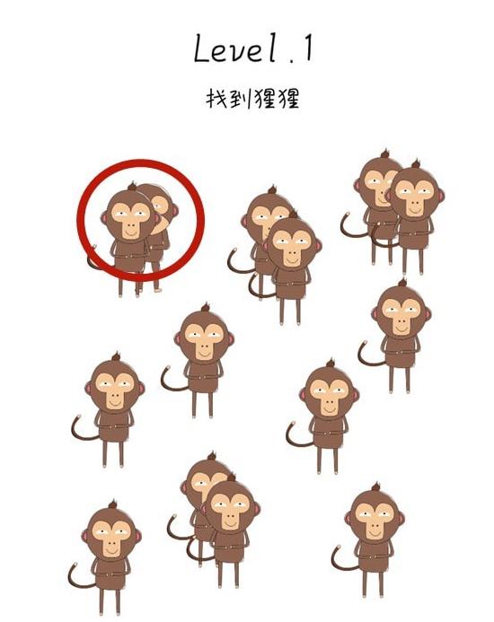 答案:把猴子都拖动一下,找出不同(猴子和猩猩是有差别的哦~)。
