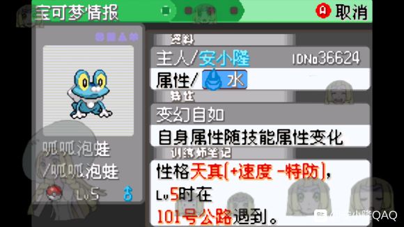 这次就不选小火龙了,选择呱呱泡蛙,听说这个蛇纹熊比普通的蛇纹熊强,别问我为什么知道,因为他这个样子看起来就很强
