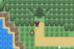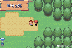 来到104号公路进入橙华森林,看到大木博士,红色搭档皮卡丘,蓝色搭档伊布
