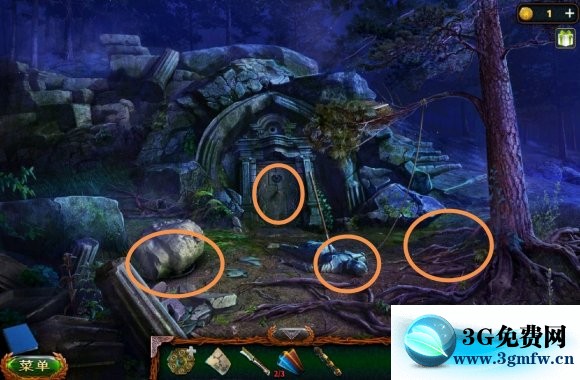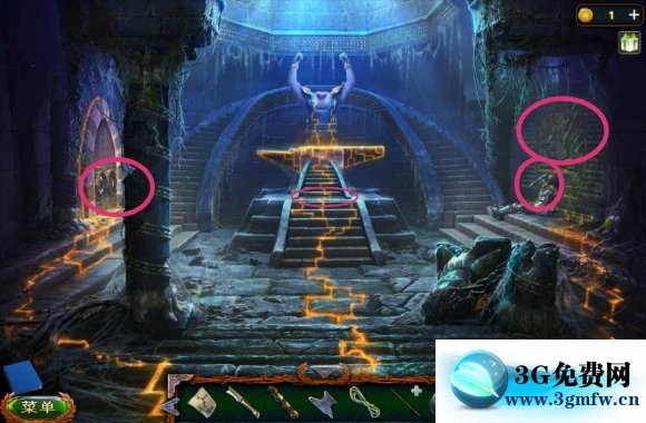 石门的手中获得----磁铁。三块磁铁放入门上(底下磁铁点一下,左边磁铁点一下)打开石门