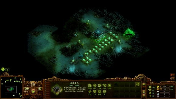 视野很重要,一定不要舍不得那300块钱。大范围的视野可以让你根据资源与地形决定往哪边推进,哪个地方适合立防线,哪个方向特感多,这些信息都有助于你通关。视野还能让你迅速找到老王,也能第一时间判断尸潮来的具体位置。右下角有老王,所以暂时不管那边,继续发育,冲到600人口后再出两个兵营准备推老王。注意经济一定不能低于600,防止双兵营出狙击手时卡钱。