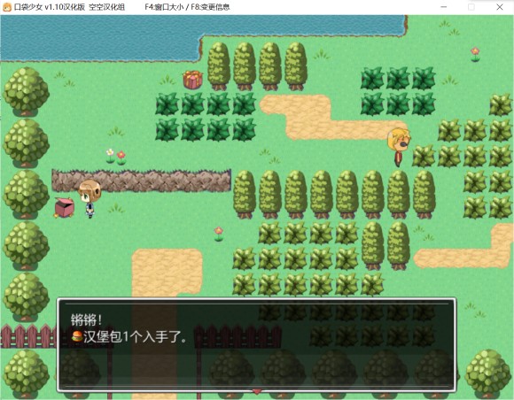往上走到野外,宝箱捡到一个汉堡包。进草丛触发对话,然后就可以回去坐电车了