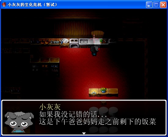 出去进入厨房(第二个房间),这里就是给小灰灰点吃的,吓一下小灰灰(不愧是亲儿子,连饭都那么与众不同)