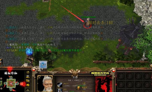 云游道人每十分钟刷新一次击杀可掉落技能升级书以及神器,还掉血成仙的