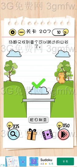 汤姆又找到壹个可以跳过的山谷了是谜题急转弯 《BrainTest》第207关的问题,很多网友不知道答案是什么,下面小编给大家带来谜题急转弯 《BrainTest》第207关攻略。