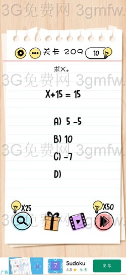 求X是谜题急转弯 《BrainTest》第209关的问题,很多网友不知道答案是什么,下面小编给大家带来谜题急转弯 《BrainTest》第209关攻略。