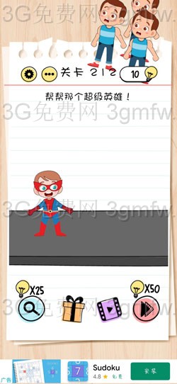 帮帮那个超级英雄是谜题急转弯 《BrainTest》第212关的问题,很多网友不知道答案是什么,下面小编给大家带来谜题急转弯 《BrainTest》第212关攻略。