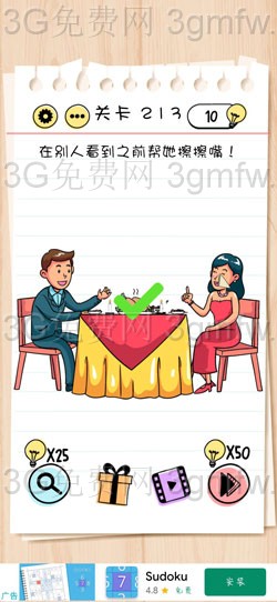 在别人看到之前帮她擦擦嘴是谜题急转弯 《BrainTest》第213关的问题,很多网友不知道答案是什么,下面小编给大家带来谜题急转弯 《BrainTest》第213关攻略。