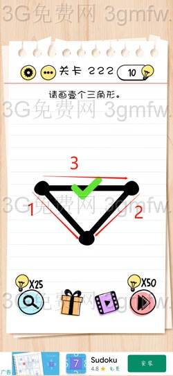 请画壹个三角形是谜题急转弯 《BrainTest》第222关的问题,很多网友不知道答案是什么,下面小编给大家带来谜题急转弯 《BrainTest》第222关攻略。