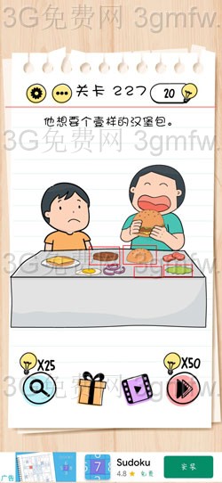 他想要壹汉堡包是谜题急转弯 《BrainTest》第227关的问题,很多网友不知道答案是什么,下面小编给大家带来谜题急转弯 《BrainTest》第227关攻略。