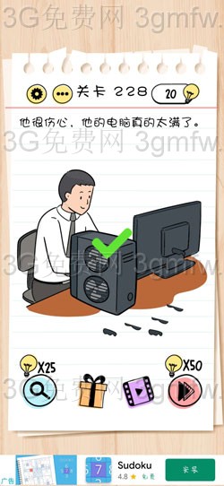 他很伤心他的电脑真的太满了是谜题急转弯 《BrainTest》第228关的问题,很多网友不知道答案是什么,下面小编给大家带来谜题急转弯 《BrainTest》第228关攻略。