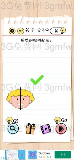 把他的脸拼起来是谜题急转弯 《BrainTest》第239关的问题,很多网友不知道答案是什么,下面小编给大家带来谜题急转弯 《BrainTest》第239关攻略。