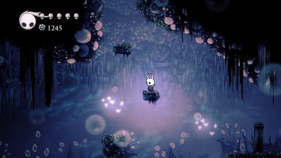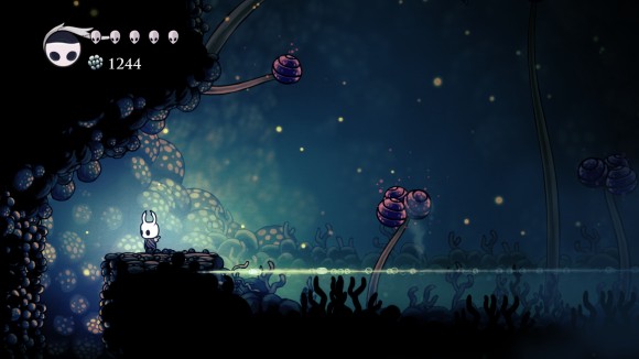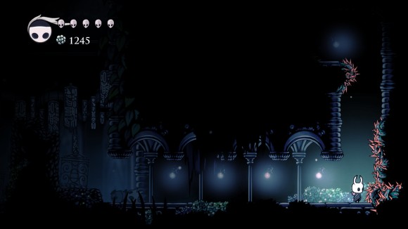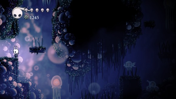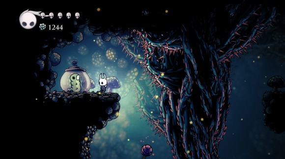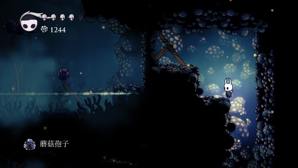 上来之后我们回到刚才的地方(如果有些好奇的人,会在蘑菇孢子那里救虫子的下面发现隐藏墙,但是一旦过去之后回来会触发坍塌,会掉到深巢,之后现在我们会来深巢的,现在先不急,如果不慎有小容器掉下去了...好自为之,努力回来吧)