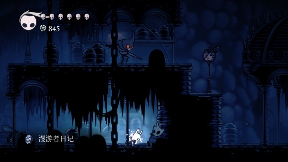 如果一直往左,会来到这个有开关的地方,打开之后过去可以下去,不过下去你就会发现你来到了你刚进入泪城,那个城市纹章封死的地方,还是要回来的,我们应该往上走