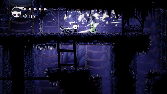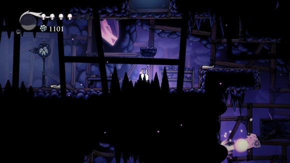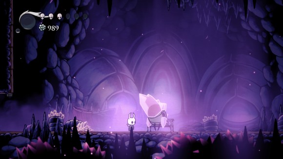 攻击他就可以打醒他,水晶守卫,血量为280,出招方式激光攻击,召唤上下激光,以及到处乱跳,还算是比较容易的,打败他我们就能坐椅子并且得到385geo,打死之后他会跑