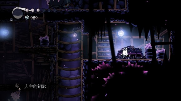 顺着右边这些上下爬的小甲虫往上爬就能摸到店主的钥匙