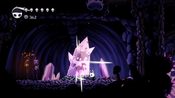 我们回到刚才那个地方,去右上角,在右上角下来后打破水晶,得到我们第二个黑法(黑砸:黑砸伤害分为3段,俯冲15,砸到地面的冲击波30,自身周围还会产生一次黑色比较高的波15,总共15+30+15=60,戴上萨满是23+50+15=88,补充之前黑波,戴上萨满伤害为40,如果连续伤害则是40xN,同样的,黑砸和白砸一样有前摇时间和无敌时间,前摇阶段不是无敌的,俯冲和下砸以及下砸之后一小段时间内处于无敌状态)