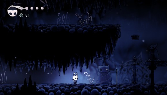 很多人会来到这个平台,往左上是虫爷爷(你每救一只装在罐子里的绿毛毛虫他就会给你一次奖励,有时候是物品有时候是钱,全地图总共有46个绿毛虫),往左下是通往苍绿的入口,现在不用去,右下是通往十字路别的地方,现在最下面是正路,我们直接去最下面