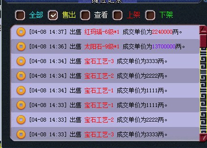 1、游戏中,10级及以上的宝石,因为单价高,受众面积小,不宜摆摊销售,需要直接丢藏宝阁。