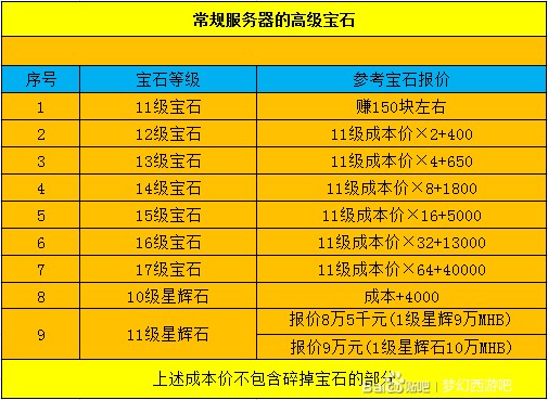 高级宝石报价表(仅供参考),大家根据区内宝石收购价做参考。