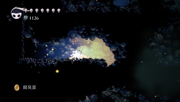 用二段上去,来到真菌核心。先一直往左上走,可以来到图1位置,左边有隐藏,过去掉下去后可以拿到一个腐臭蛋
