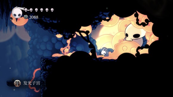 上去之后一直往右走,会有一场遭遇战,打完遭遇战有个地方会打开,进去得到护符,发 光 子 宫:戴上他的时候每4秒召唤一个可爱的小骑士苍蝇