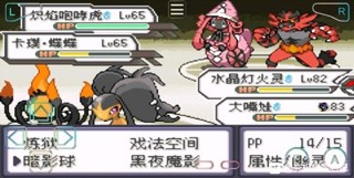 第二回合:水晶灯火灵暗影球将卡噗蝶蝶打至半血 mega大嘴娃剑舞