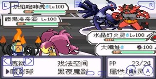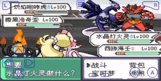 第三回合:水晶灯火灵暗影球消耗暗黑洛奇亚,mega大嘴娃铁头将炽焰咆哮虎打至残血
