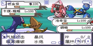 第二回合:胡帕异次元猛攻将卡噗蝶蝶打至半血,暗黑洛奇亚暴风淘汰卡噗蝶蝶
