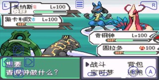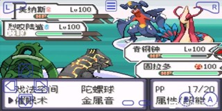 第六回合:青铜钟陀螺球消耗美纳斯,固拉多喷火秒掉路卡利欧消耗美纳斯