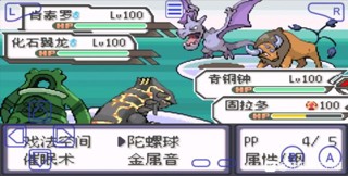 第三回合:青铜钟陀螺球消耗肯泰罗,固拉多喷火消耗肯泰罗