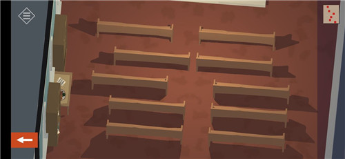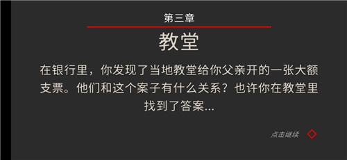 来到教堂后面,广告牌上有数字(9131)2523,进入教堂开灯,在门边的密码箱上输入2523,书架上的两张纸和桌上的纸上画着相应座位图,按照书架第3层的图把椅子摆好,注意黑叉为主持台方向,面朝主持台:右边从上到下:“外内内内外”,左边从上到下:“内外外内内”,即可打开左上角黄色把手的门。