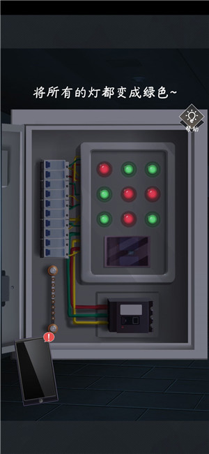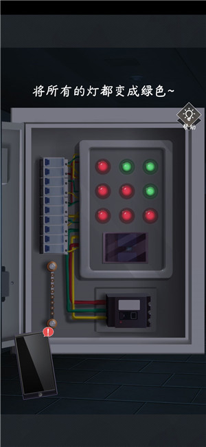 出门后一片漆黑,先不着急到天台,先来到楼梯里恢复电路。(点击7号位,9号位,5号位,1号位)