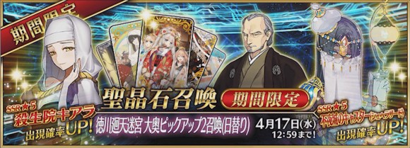 二期卡池UP从者为杀生院和1001的日替,以及老爷子柳生但马守宗矩。其中,杀生院作为限定从者,除了此次活动有UP,在2021年新年的时候,也会有单UP的。