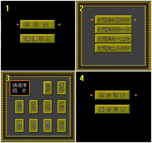 ④完成后,就选择【开始游戏】进入游戏;如果想更改剧本或国家,就选择【重新设置】,流程退回到步骤2。