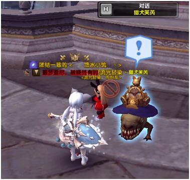 在红莲宫的喷泉旁边有一条猎犬,这里可以使用材料。