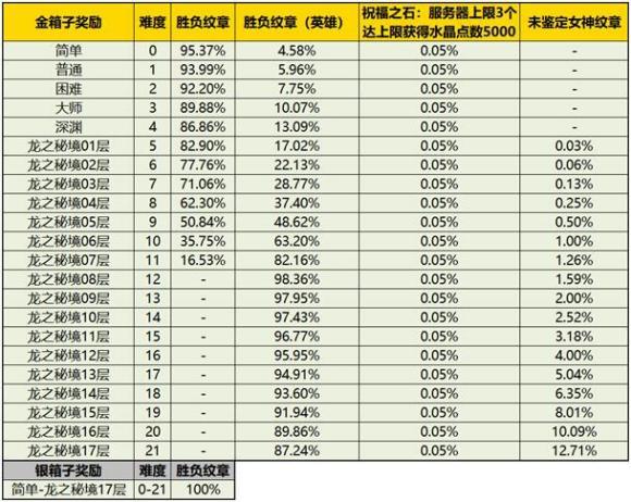 关卡结算翻箱子出,层数越高,金箱子给英雄胜负纹章的概率越大