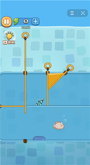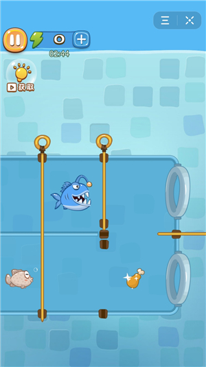 3、抽取淡蓝色鲨鱼前方的抽针,鲨鱼消失。