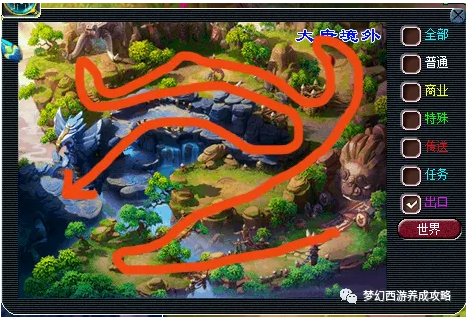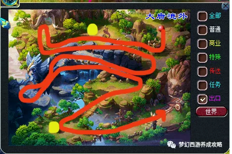 琵琶树怪打完后,点15个热心仙人,这个不用战斗,但路上会遇到怪,这个怪用门派技能点他会自己跑,路线如下