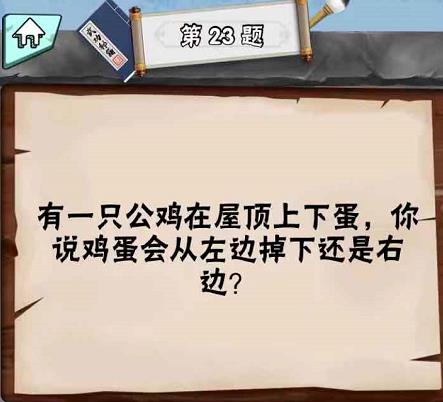 “有一只公鸡在屋顶上下蛋你说鸡蛋会从左边掉下还是右边?”是脑筋急转弯达人LV1第23关问题,很多玩家还不知道答案是什么,接下来小编为你带来脑筋急转弯达人LV1第23关答案。